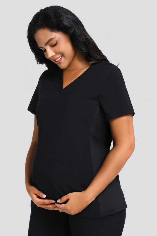 Maternity Scrub Top - V-Neck Shirt, Workwear Pregnancy Scrubs with 2 Pockets