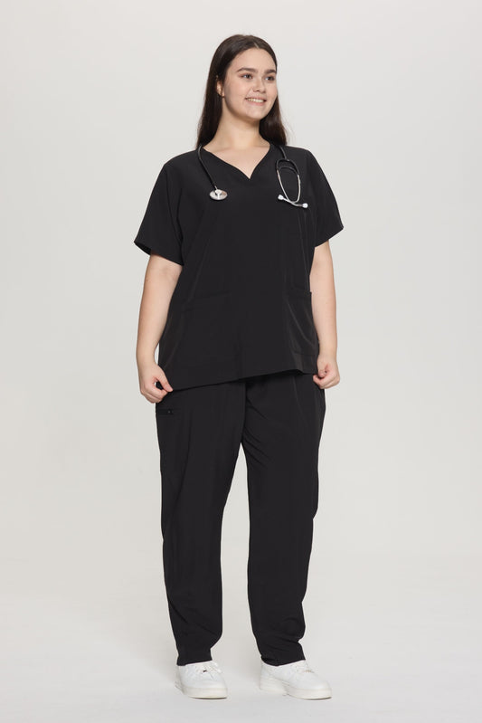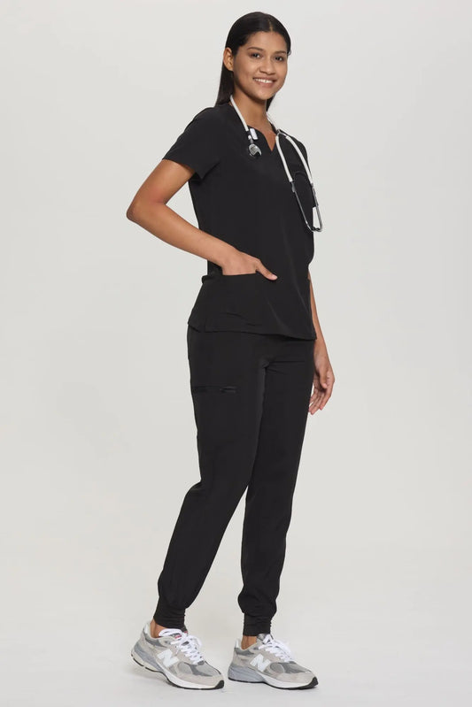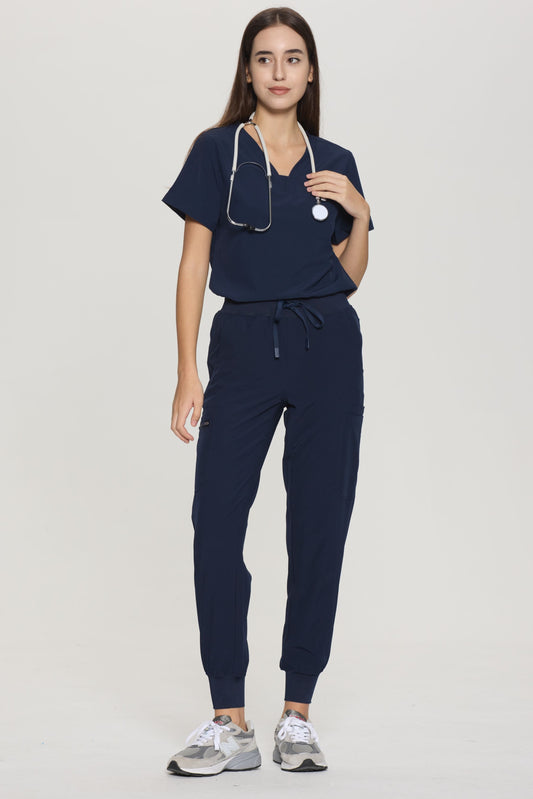 COZYFIT Curved V-Neck Scrub Top & Jogger Pants with 8 Pockets Scrub Sets