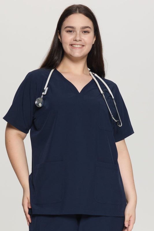 COZYFIT Curved V-Neck Scrub Tops with 3 Pockets
