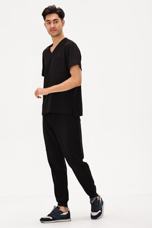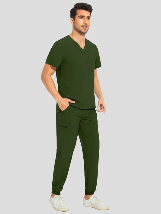 COZYFIT 4 Pockets V-Neck Scrub Top and 7 Pockets Jogger Pants Mens Scrubs Set