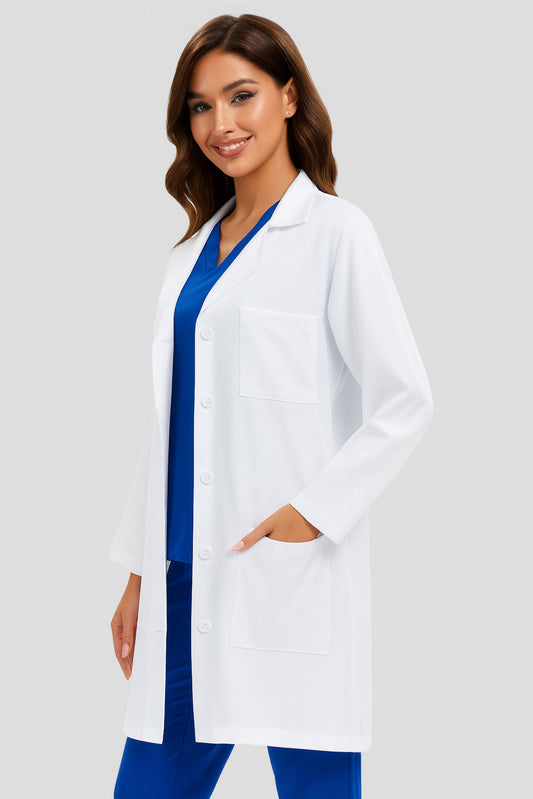 Lab Coat for Women with 3 Pockets, Professional White Women's Lab Coat Long Sleeve, Hip-Length Fit