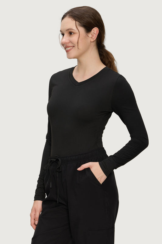 Women’s Underscrub Tee Comfort V-Neck Long Sleeve Undershirt with Soft & Easy Care Fabric