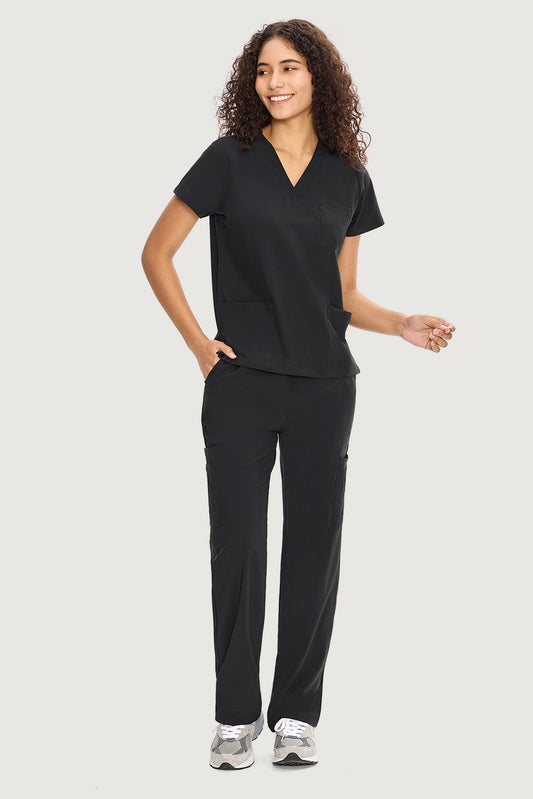 COZYFIT V-Neck Scrub Top & Straight Leg Pants with 9 Pockets
