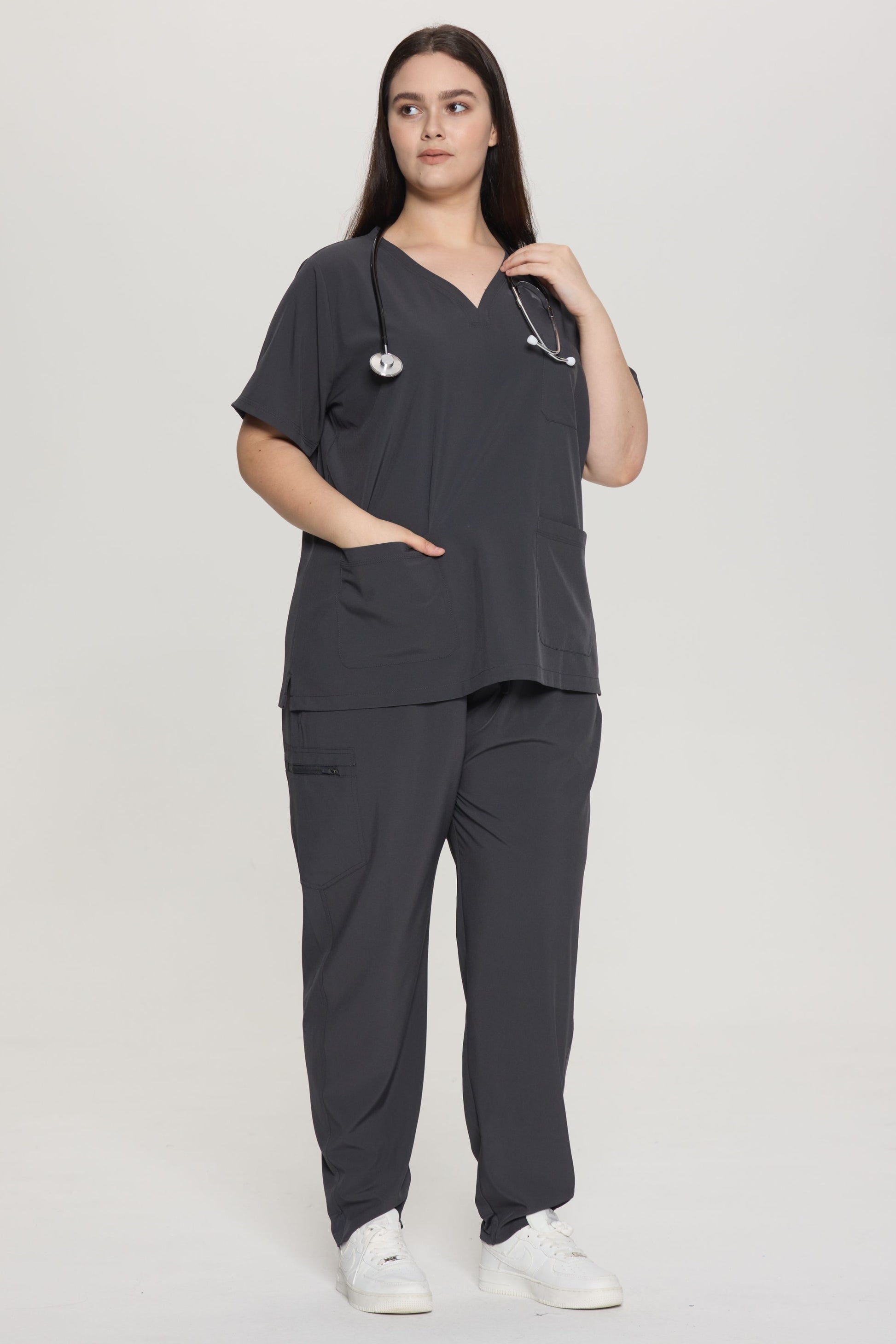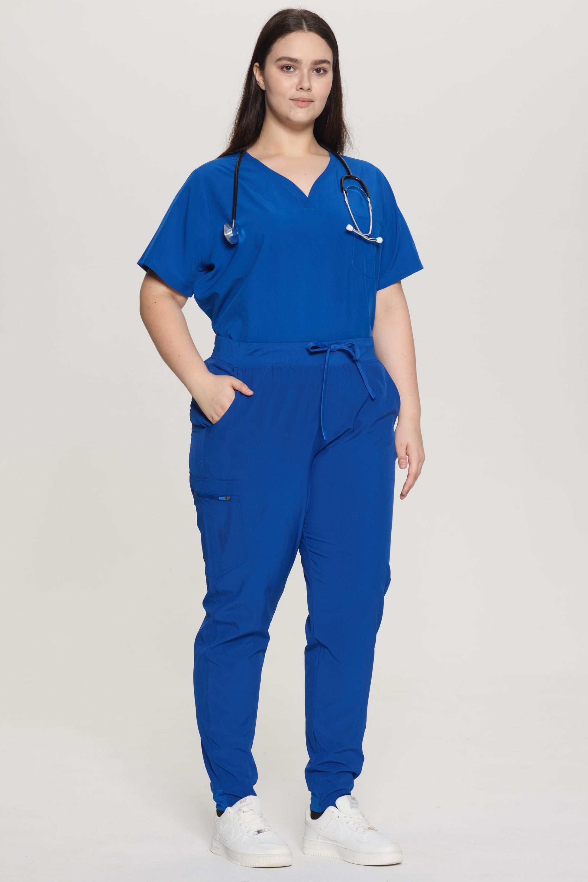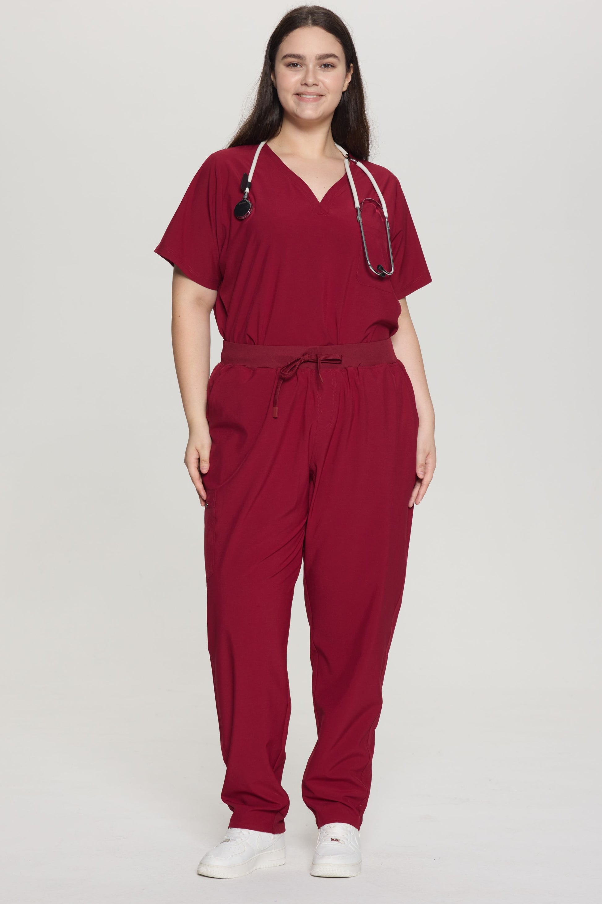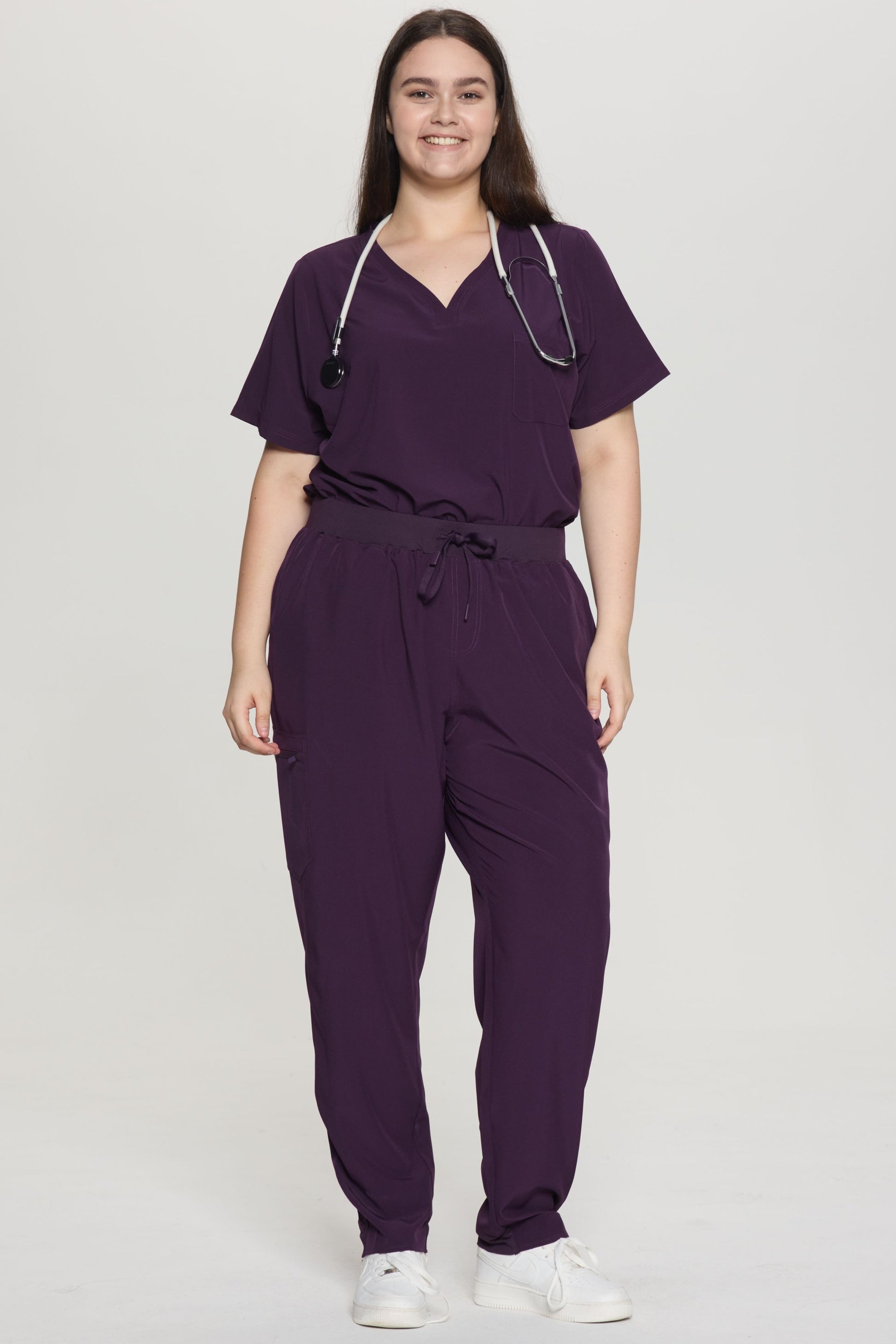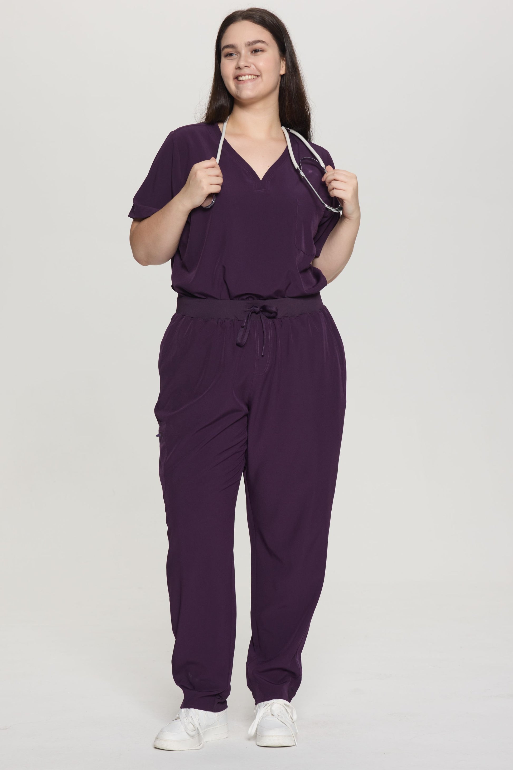 COZYFIT Curved V-Neck Scrub Top & Jogger Pants with 8 Pockets Scrub Sets