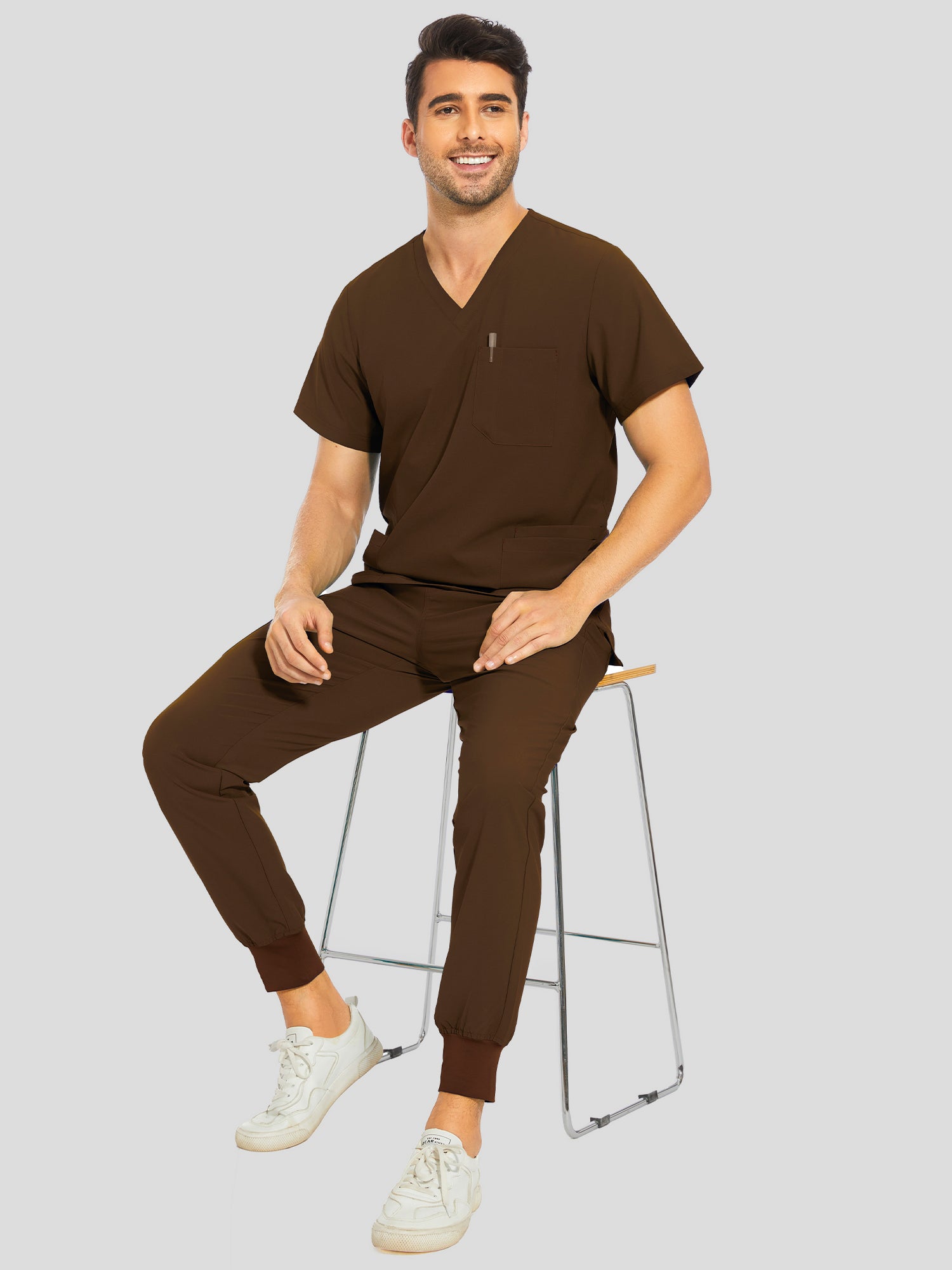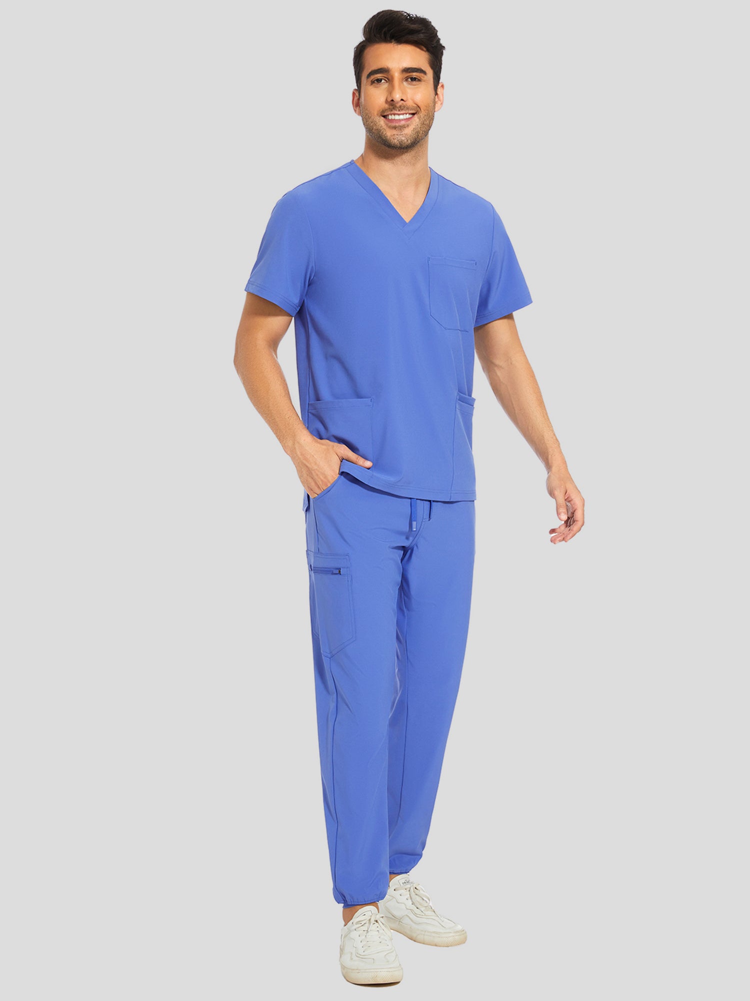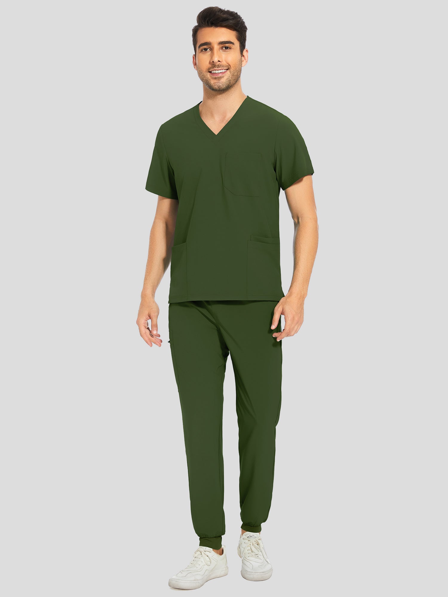 COZYFIT V-Neck Scrub Top & Jogger Pant with 8 Pockets, Yoga Waistband, Anti-Wrinkle Scrubs for Men