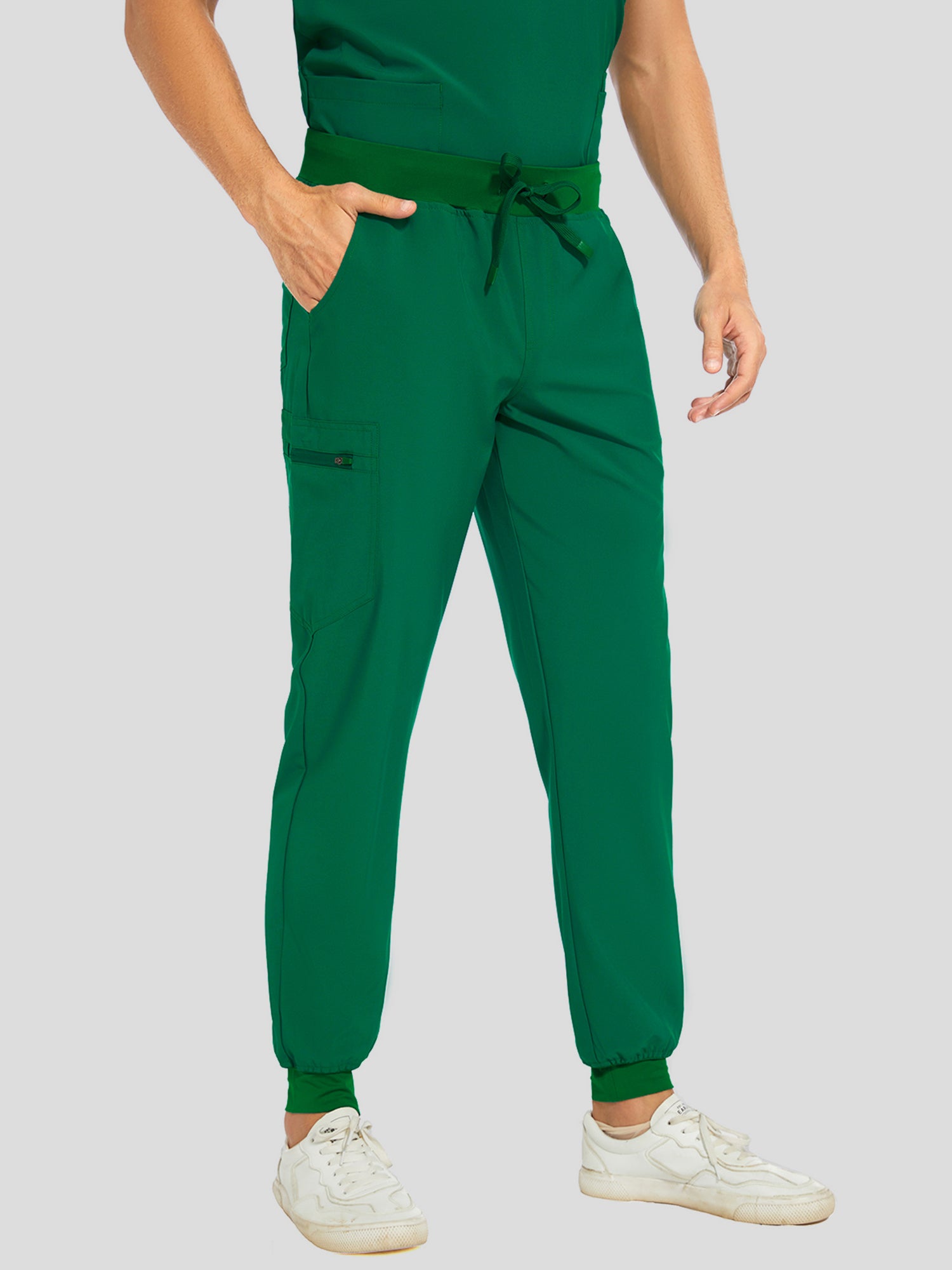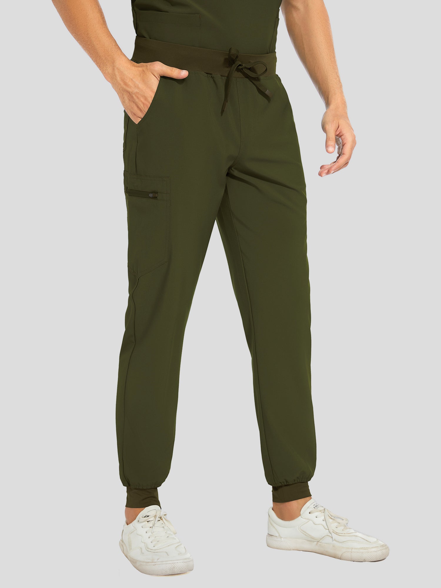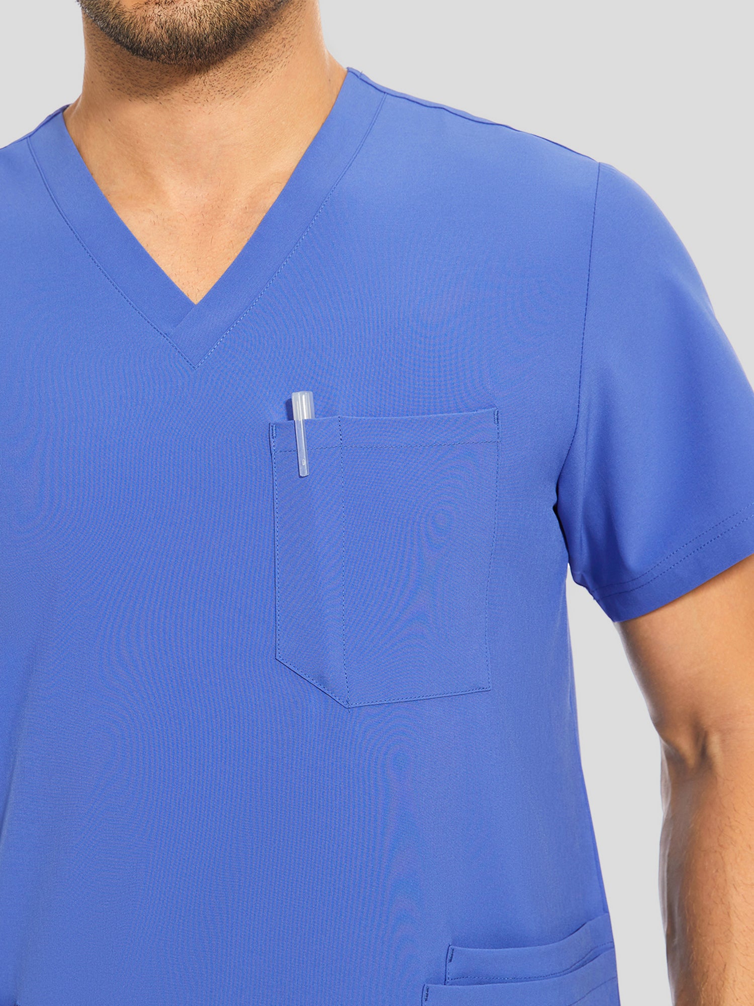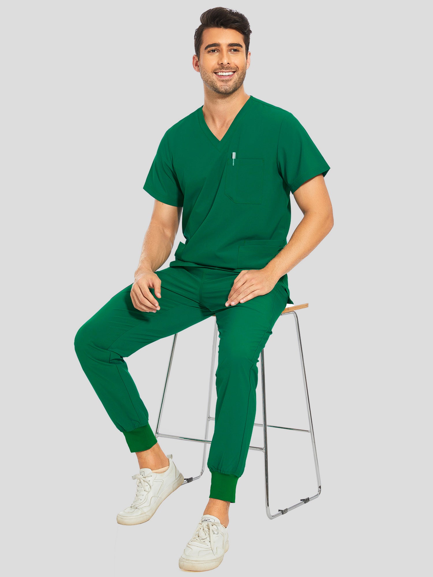 COZYFIT V-Neck Scrub Top & Jogger Pant with 8 Pockets, Yoga Waistband, Anti-Wrinkle Scrubs for Men